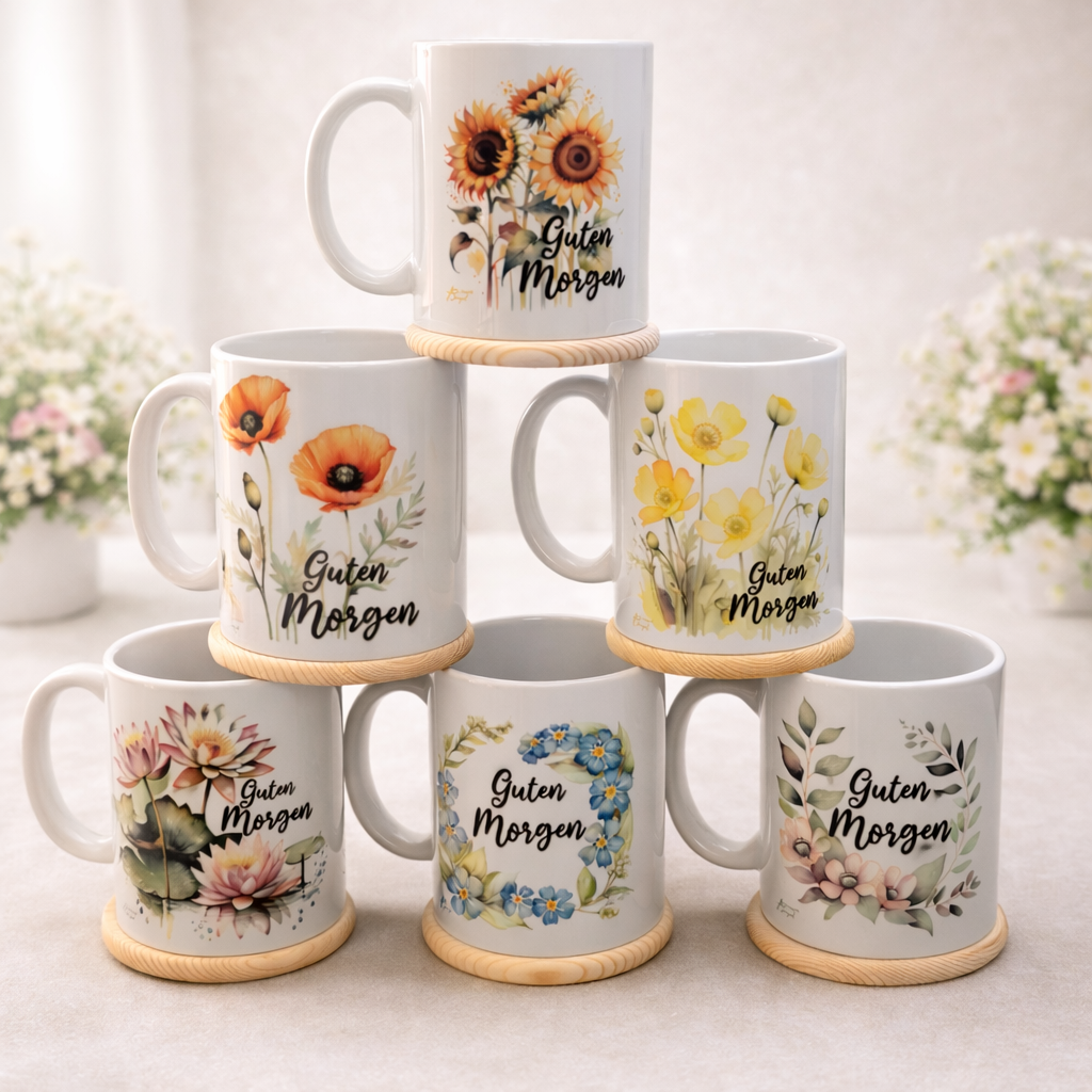 Die Guten Morgen Tasse mit dem treuen Welpen ist das ideale mitBringsel für einen blumigen Start in den Tag eines lieben Menschen.